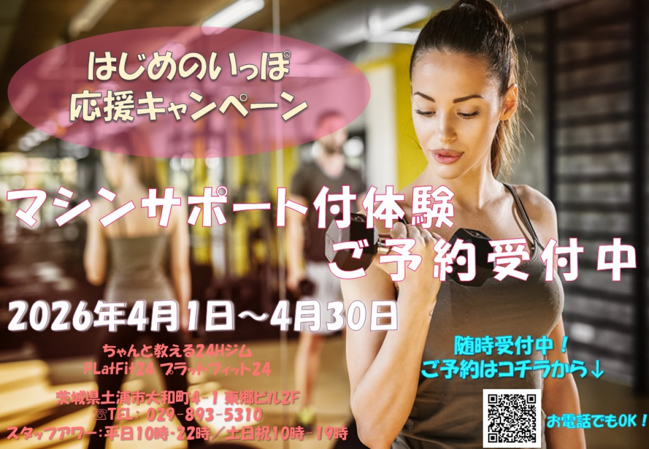 4月のPLatFit24では【はじめのいっぽ応援キャンペーン】と題し、ジム利用初心者さんに嬉しいキャンペーンを実施しています。